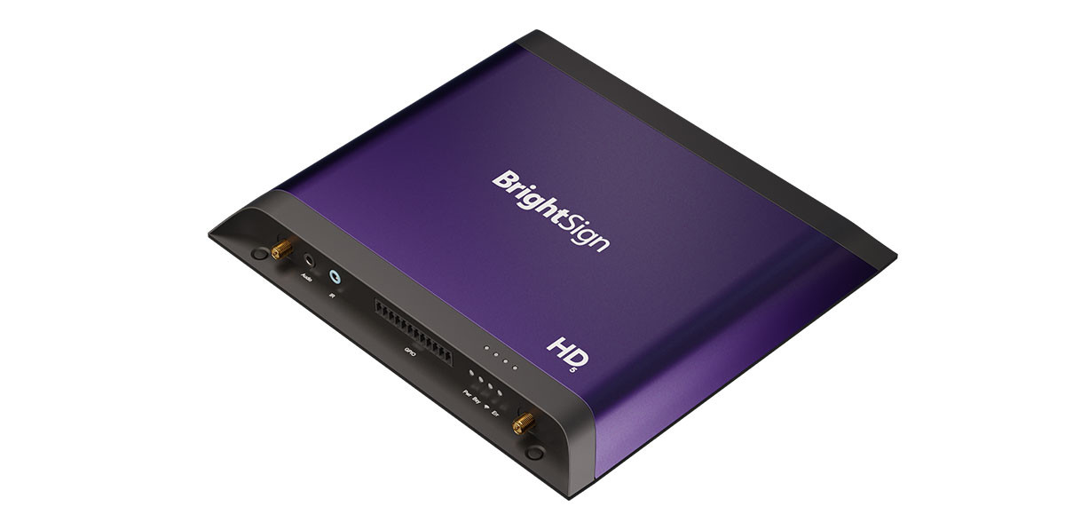 Build experiences that go beyond the screen with the all new BrightSign HD5. This ultra-high-definition player is purpose-built for interactivity, 4K60p HDR10 video, and demanding HTML5 animations. With its exible I/O set, interactive peripherals like touch screens, proximity sensors, and buttons are easy to install and control. UDP and serial commands can be used to control environmental elements like lighting and conference room routing. Integrated partner solutions enable networks of players to deliver audience measurement, monetization, and analytics data to a centralized dashboard. A patented aluminum enclosure and slim form factor allows the device to operate reliably in extreme conditions. With its full set of I/O connections, high-quality 4K video, and advanced HTML performance BrightSign HD5 is the player of choice for captivating experiences that connect with your audience.