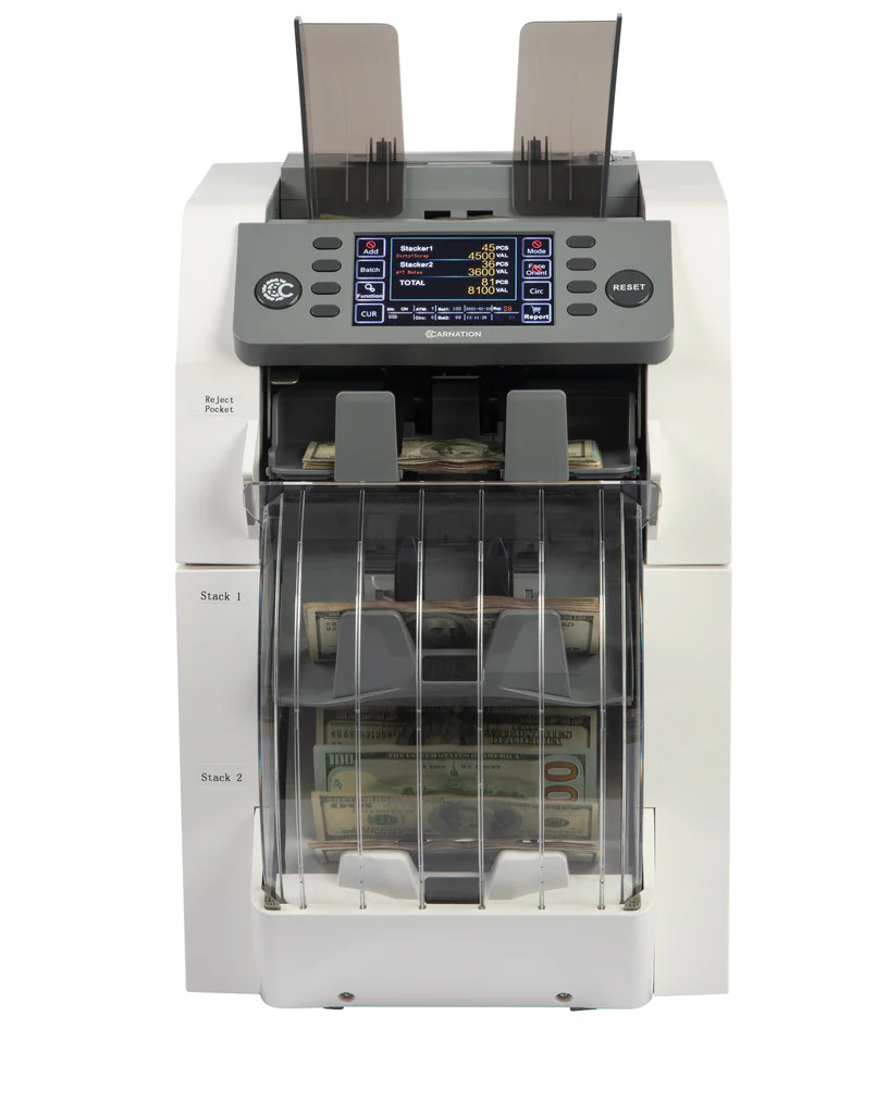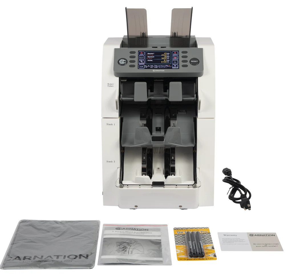 3 POCKET CASH COUNTING MACHINE – This automatic bill counter is intuitive to use and features a crystal-clear LCD display. It also boasts reporting and printing functions, Auto-adjustable technology, and easy software upgrades via the USB port.