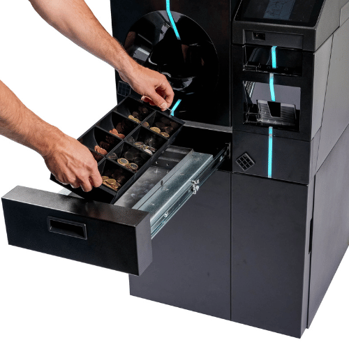 • Cash recycling functionality – allows for the deposit and dispense of notes and coins