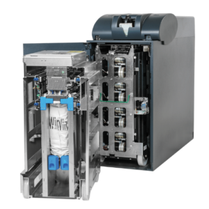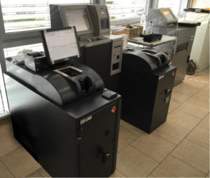 PLATINO JR is CIMA’s medium to high capacity back-office note recycling solution for retailers or venues with higher note requirements. Made up of our AST7008S note recycler, the PLATINO JR solution is affordable with all the functionality you would expect from a complete back-office cash recycling solution. Driven by our flexible CAOS device operating system, retailers can customize how the system works specifically in their environments. The AST7008S note recycler utilizes 8 x roll storage modules (RSM) for recycling.  Each RSM can hold up to 500 notes of a single denomination making it ideal for stores or environments where note volumes are high. The number of RSMs makes the configurability of the note recycler very flexible.  There are 8 x RSMs providing a total recycling capacity of up to 4,000 notes. The AST7008S has a unique self-sealing, stacking bag system for up to 3,000 surplus notes.  This eliminates the need for cassettes and allows CIT operators to pick up cash quickly without having to open cassettes in-store.