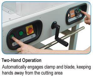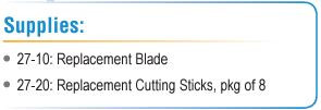 Accuracy meets safety in the Cut-True 27S, with front and rear transparent safety guards, blade lock, safety lock with key, external blade depth adjustment, automatic blade return from any position, easy-to-use blade change safety tool, and a wooden paper push for safe alignment. The rugged metal stand is also included, providing a stable work surface, and a convenient shelf for additional storage.