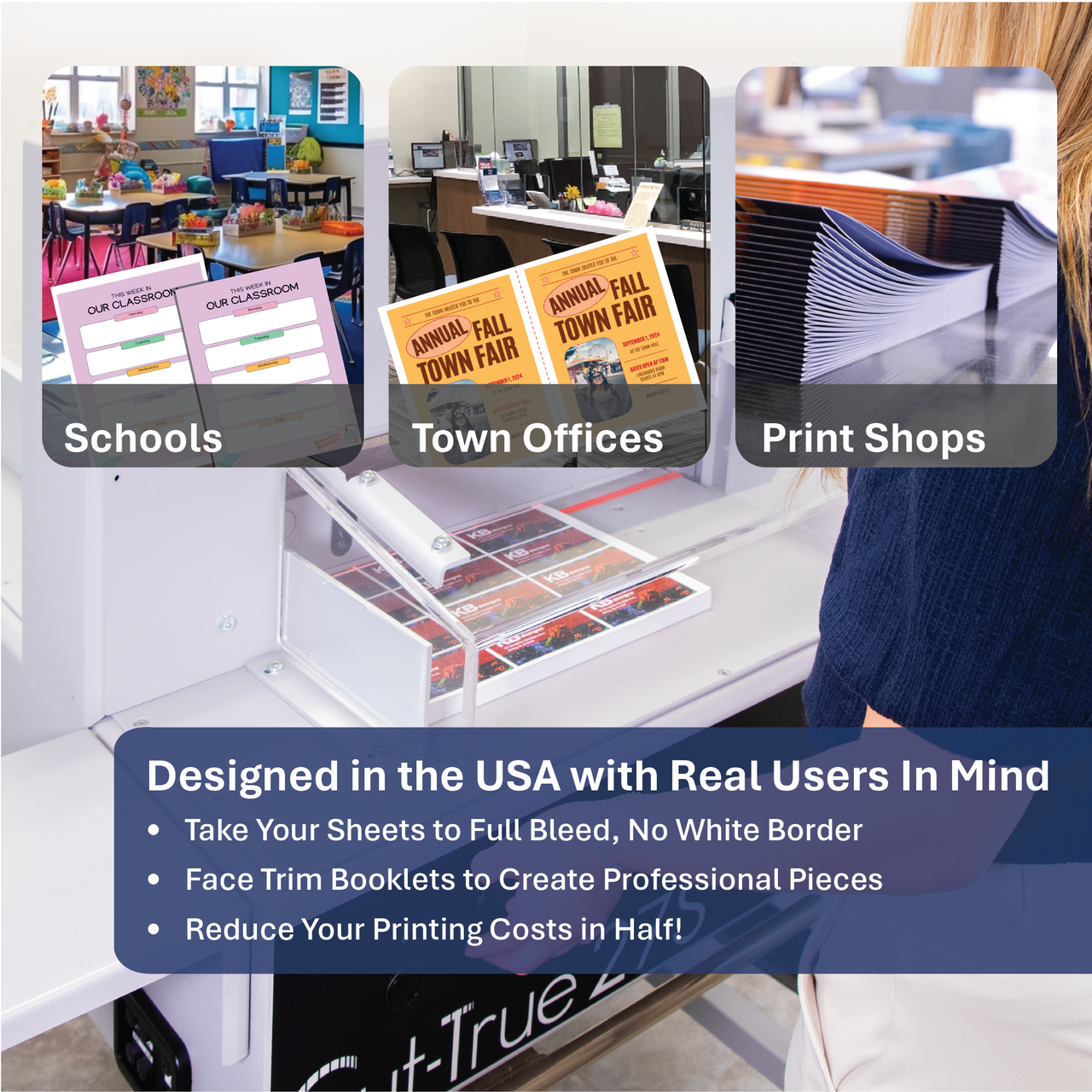 The Cut-True 27S Electric Cutter is ideal for transforming brochures, invitations and more, with crisp, accurate cuts, and makes a welcome addition to print shops and in-plant finishing operations.