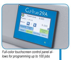 The Cut-True 29A is ideal for transforming large sheets into brochures, invitations and more, with crisp, accurate cuts, and is a welcome addition to print shops and in-plant finishing operations.