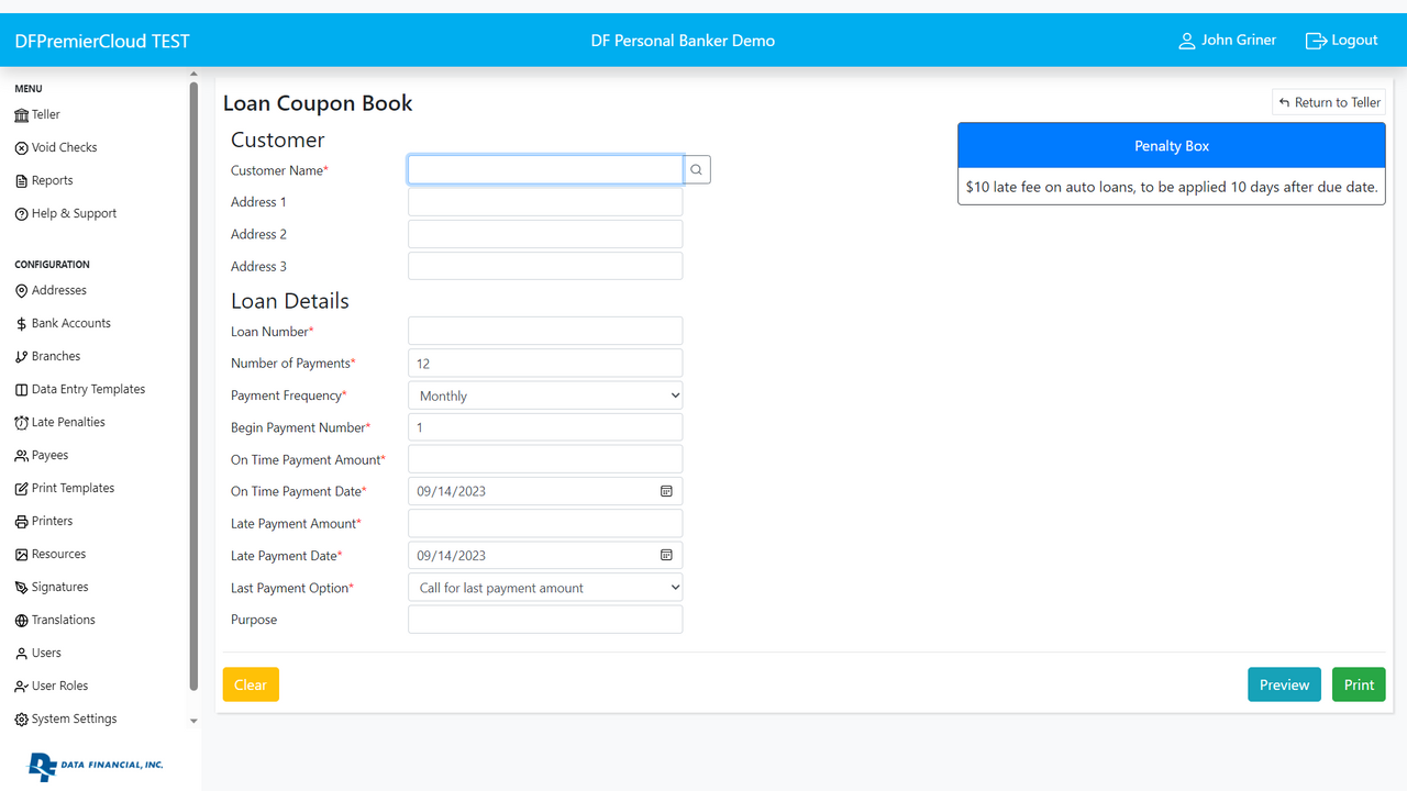 Frequent Updates – Under your service charge contract, updates will be applied automatically and with limited to no downtime, outage or interruptions. Updates to the print client application will be available to download from the web application as they become available. Data Financial, INC. take care of the servers and will roll out regular software updates, including security updates so you don’t have to worry about wasting time and money maintaining the system yourself.