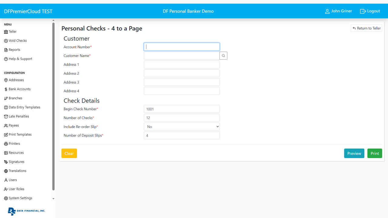 DFCheckPro Teller is the latest release of the market leading check printing applicaiton from Data Financial, Inc.