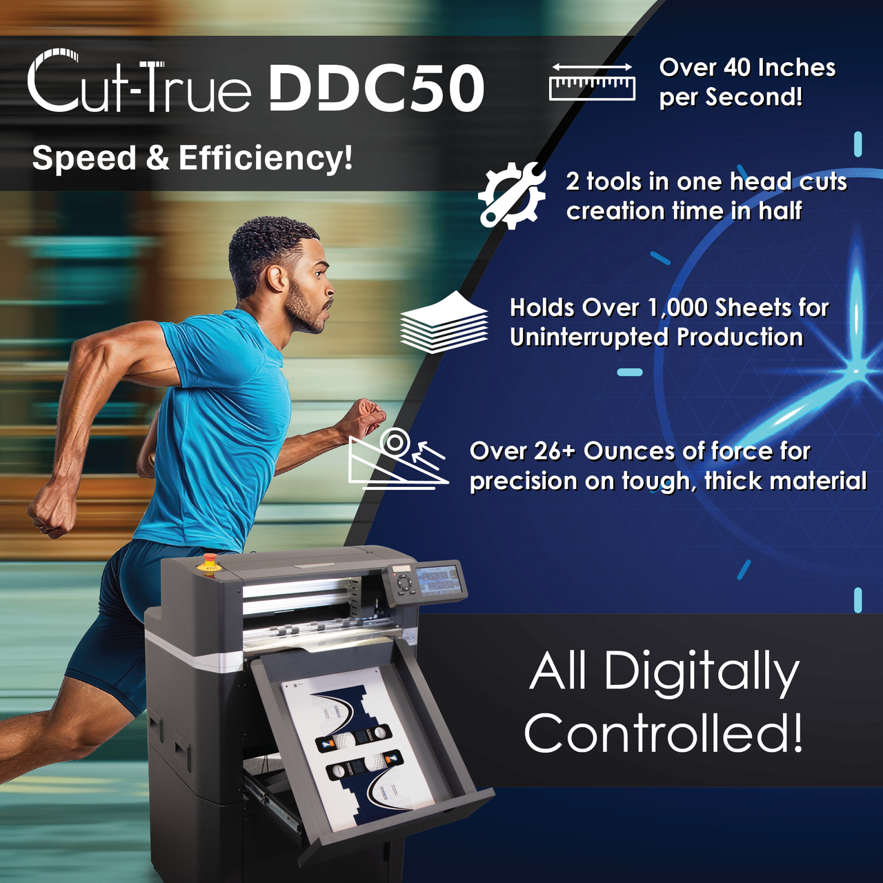 The Cut-True DDC50 sets the standard for on-demand print finishing with unmatched speed and accuracy in the mid-production market.