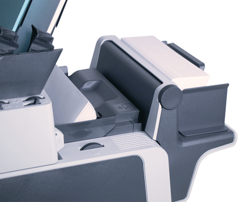 With two fully-automatic sheet feeders and one automatic insert/BRE feeder, it offers a range of folding and inserting capabilities. It processes documents up to 14” in length, producing up to 1,350 envelopes per hour. Electromagnetic double document detection ensures each envelope contains the correct number of documents. The energy-saving mode automatically puts the inserter into standby after one hour of being idle.