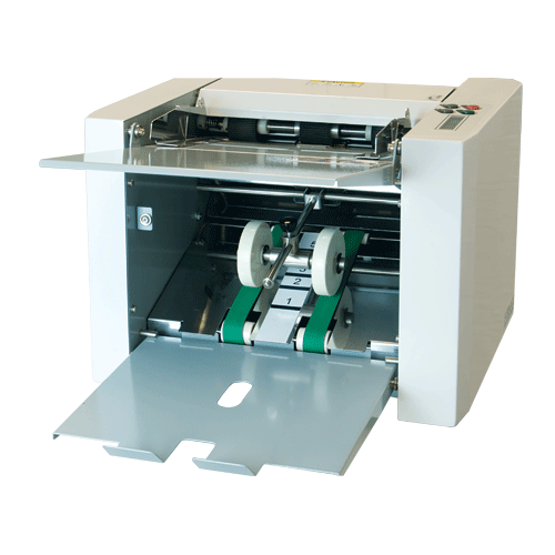 The FD 300 Office Desktop Folder provides an economical solution for low-volume folding projects. This compact folder processes 11″ and 14″ paper at speeds up to 7,400 sheets per hour, and is pre-marked for four popular folds: C, Z, Half and Double Parallel.