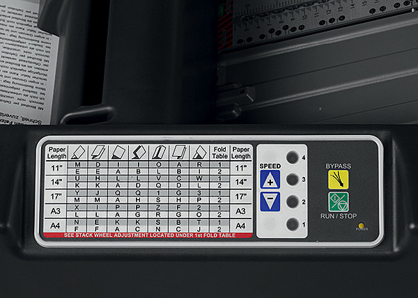 The 1812 paper folding machine fills the gap between our larger models and the smaller desktop models that we offer. The variable speed makes your fold jobs run quickly and smoothly without having to adjust for different paper weights.