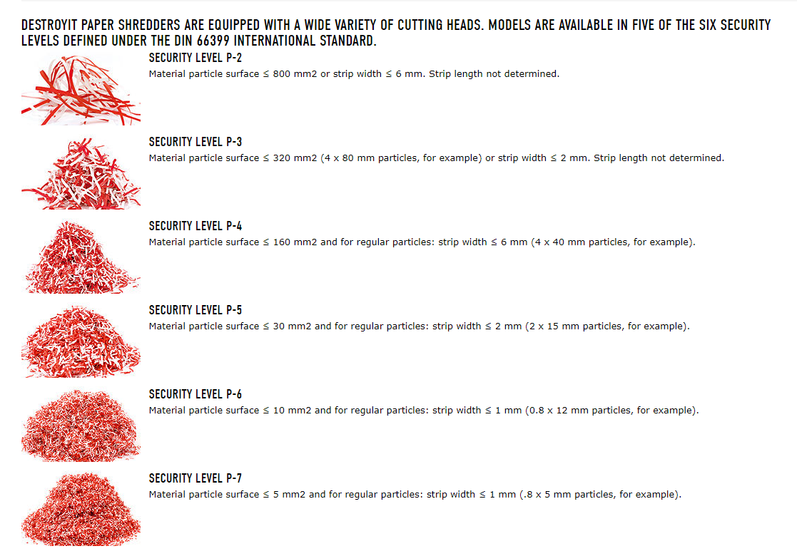 Automatic start and stop controlled by photo cell. Patented Electronic Capacity Control (ECC) indicator prevents jams by monitoring sheet capacity levels during operation. Automatic oil injection ensures optimal performance at all times. High quality, hardened steel cutting shafts. Meets all NSA/CSS specifications and is DOD approved. 1 year warranty on the cutting shafts. Quiet and powerful single phase motor rated for continuous operation. Sturdy Twin Drive System with fully enclosed gear box housing. High quality wooden cabinet mounted on casters. Convenient, environmentally friendly shred bin does not require disposable shred bags.