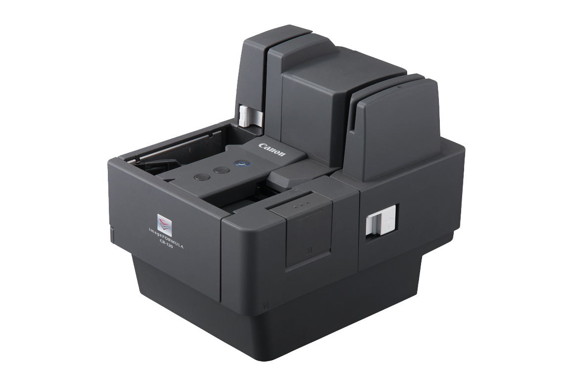 The Canon ImageFORMULA CR-120 with Magnetic Stripe Reader series scanners are small but fast check scanning devices that sit conveniently on any counter-top where space is at a premium. (Manufacturer part number 0132T237)
