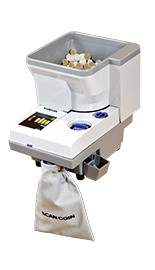 Two separate adjustments for coin diameter and coin thickness make the Scan Coin SC303 Coin Counter a universal choice. A side bag attachment for rejected coins is standard for both products. The Scan Coin electronic sensing technology assures high accuracy in identifying foreign, damaged or counterfeit coins. Other benefits for the user are pre-selectable bag stops, memory, automatic reverse function removing jammed coins and automatic stop and off-sort function for smaller coins. Accessories include e.g. tubing attachment and bag holder for rejected coins.