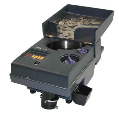 The Scan Coin SC303 Coin Counter is a portable, high-speed coin counter which counts up to 2,700 coins/minute. Applications include banking, retail, amusement and other businesses that need to count, verify or bag coins or tokens. The Scan Coin SC303 is designed with a convenient handle making an excellent choice for car washes and vending operations!