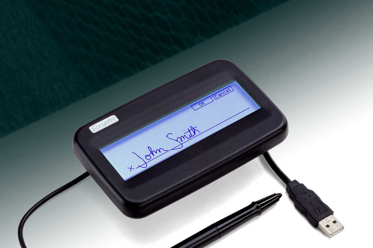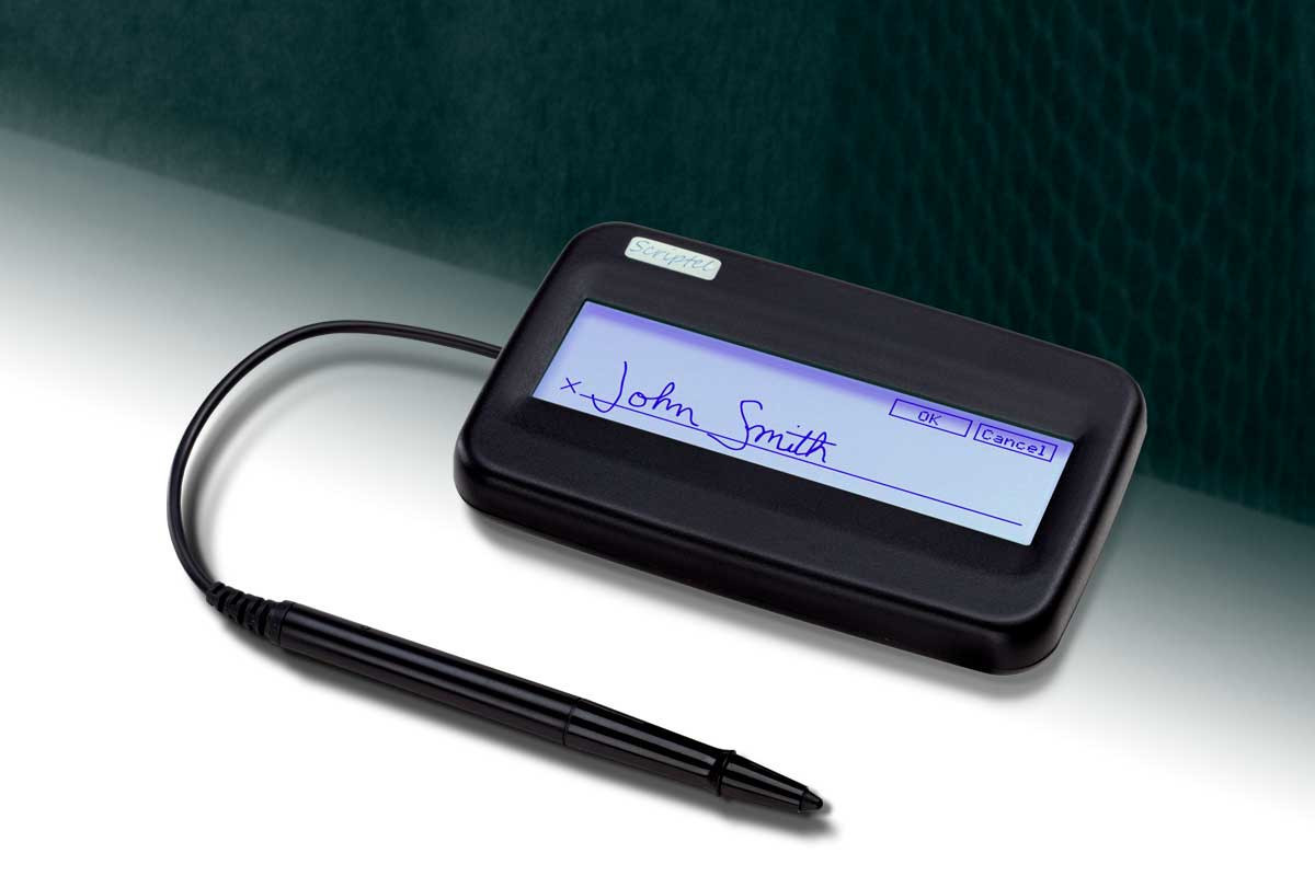 Scriptel’s ScripTouch series electronic signature pads are all verified Citrix Ready and feature rugged construction and high reliability for frequent transactions and long lifetimes. Scriptel’s active battery-less tethered pen is proven to perform flawlessly through more than 1 million signatures. The signature sensing layer is a solid, durable, no-scratch, glass signing surface on top of the backlit LCD for great device durability. Signature quality is not affected by wear or heavy use and there are no batteries to replace.