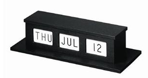 The Single-Face or optional double faced, Self-Storing Counter Calendar is perfect for bank, hotel, unemployment office, or credit union lobbies; it will remind customers of the correct date when writing checks, contracts, or signing other important documents. Made of a sturdy brushed aluminum, the date can be easily changed by removing the top panel and changing the date inserts. The top panel also allows for storage of unused inserts. The calendars can be purchased in black or silver; the lettering is available in black typeface on white background and white typeface on black background. The non-slip bottom will prevent the calendar from slipping or scratching surfaces.