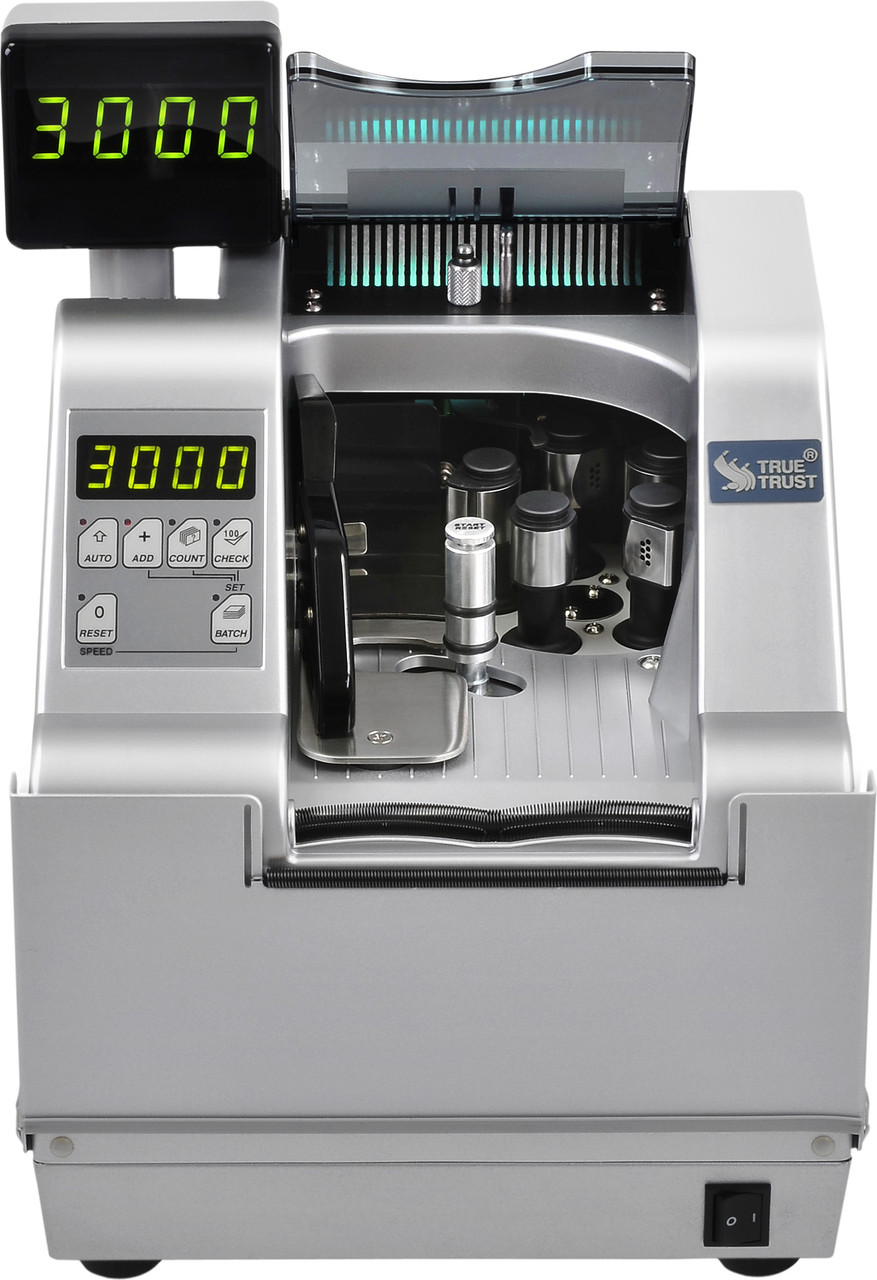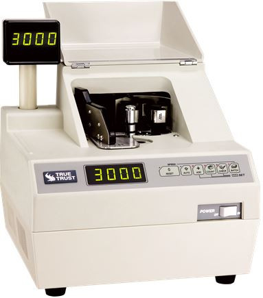 The TBM D1 (VS) Currency Counter is specially designed to count strapped currency and has selectable counting speeds of 1,000, 1,200, 1,500, 2,000, or 3,000 pcs/min. At the highest speed selection, the TBM MD1 (VS) Currency Counter provides a 60% productivity increase over conventional models (1,500 pcs/min).Â