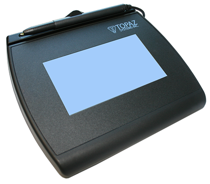 SignatureGem® LCD 4×3 is Topaz’s advanced, more durable LCD (4.4”W x 2.5″L) electronic signature pad that displays “electronic ink” under the pen tip during signing. The large, rugged signing surface make this a versatile pad for the most demanding applications.