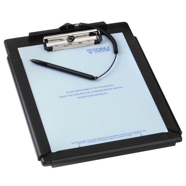 SigLite® LCD 1×5 (T-L460 and T-LBK460) is Topaz’s low-cost, pressure-sensitive electronic signature capture pad. It features all the high-quality biometric and forensic capture techniques of a SignatureGem® LCD 1×5 pad but with a low-cost touchpad and stylus in place of the more rugged digitizing pen and inert tempered glass surface of the SignatureGem model series.