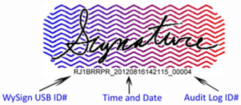 Our ASL option will print the WySign USB ID#, time/date and the signature audit ID# for each printed signature. This will allow you to look at check that has been signed by Wycom and correlate it to the exact user who was logged in and requested the signatures to be printed! This provides a great level of security by tracking each individual signature check by check!